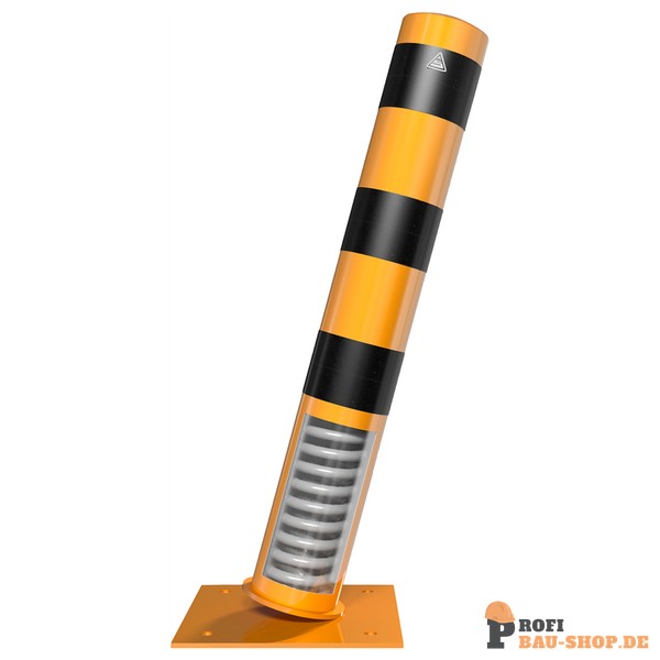 Stahlrohrpoller Ø 152 x 3,2 mm ortsfest, zum Aufdübeln mit aufgeschweißter Stahlkappe neigbar mit starker Zugfeder Dieser neigbare Stahlrohrpoller ist für hohe Anfahrbelastungen geeignet und stellt sich bei Entlastung automatisch in die Ausgangsposition zurück Das Signal bietet eine Hilfestellung be
