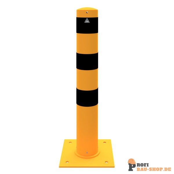 Schake Absperrpoller Stahlrohr Ø 152 x 3,2 mm ortsfest zur Dübelbefestigung, feuerverzinkt und gelb beschichtet mit drei schwarzen Streifen, Gesamtlänge: 1000 mm, ohne Signal