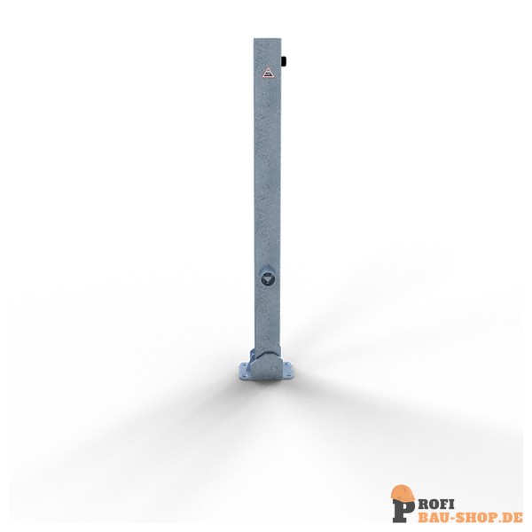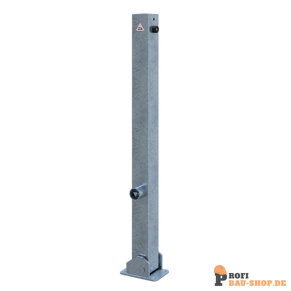 Schake Absperrpfosten 70 x 70 mm umlegbar mit Dreikantverschluss, für Dübelbefestigung mit Bodenplatte 100 x 150 mm, feuerverzinkt, ohne Öse