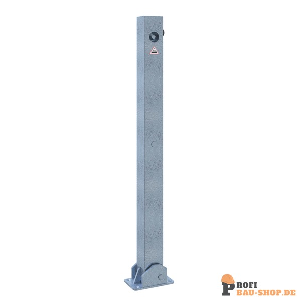 Schake Absperrpfosten 70 x 70 mm umlegbar mit Dreikantverschluss, für Dübelbefestigung mit Bodenplatte 100 x 150 mm, feuerverzinkt, ohne Öse