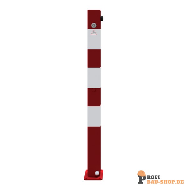 Schake Absperrpfosten 70 x 70 mm umlegbar mit Dreikantverschluss, für Dübelbefestigung mit Bodenplatte 100 x 150 mm, feuerverzinkt und rot beschichtet mit drei weiß reflektierende