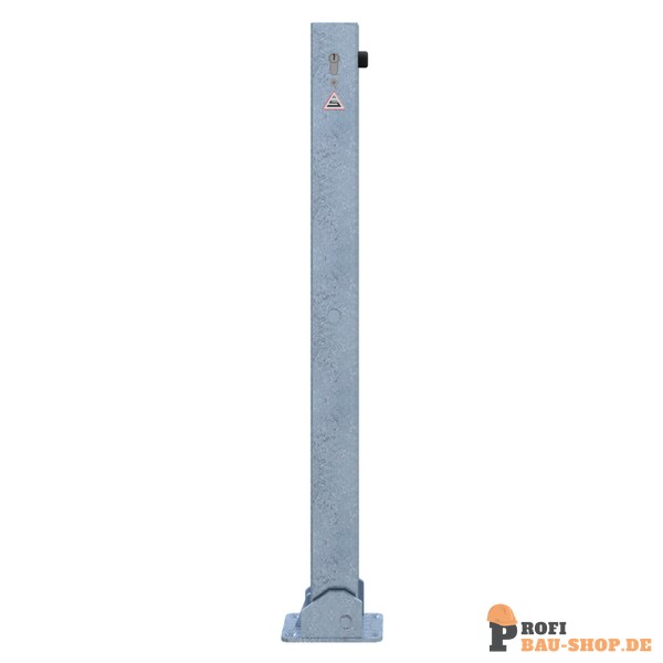 Schake Absperrpfosten 70 x 70 mm umlegbar mit Profilzylinderschloss, für Dübelbefestigung mit Bodenplatte 100 x 150 mm, feuerverzinkt, ohne Öse