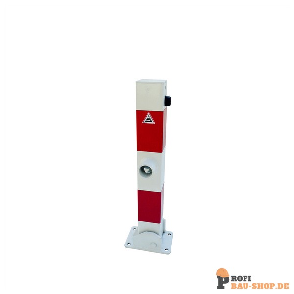 Absperrpfosten Vierkantrohr 70 x 70 mm 500 mm Überflur umlegbar, mit Dreikantverschluss nach DIN 3223, selbsteinrastende Verriegelung für Dübelbefestigung mit Bodenplatte 100 x 150 mm oder zur Befestigung an Bodenhülse Art.-Nr. 470.60
