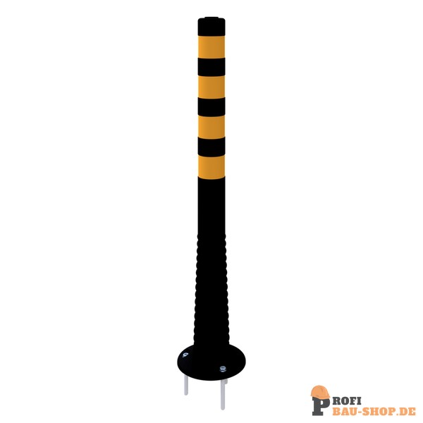 Flexipfosten schwarz, selbstaufrichtend, Ø 80 mm, PUR, mit gelb reflektierenden Streifen, inkl. 3 Schrauben und Dübel