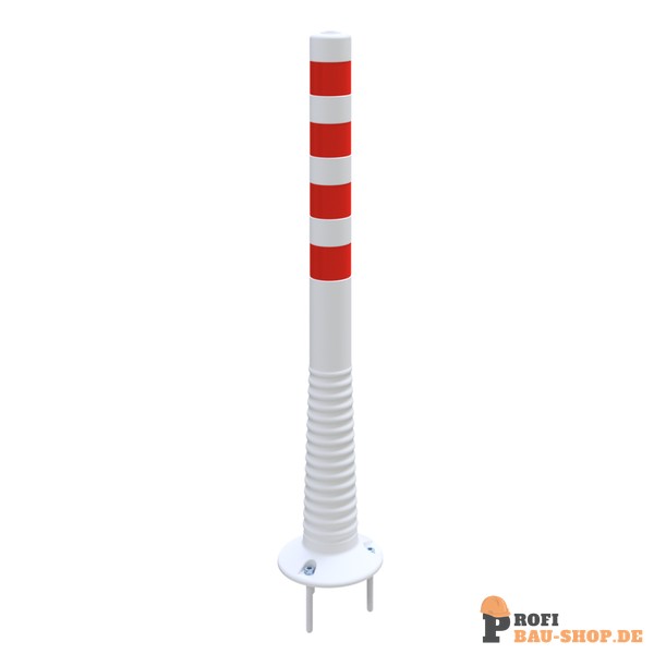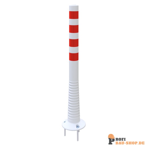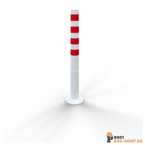 Flexipfosten weiß, selbstaufrichtend, Ø 80 mm, PUR, mit rot reflektierenden Streifen, inkl. 3 Schrauben und Dübel