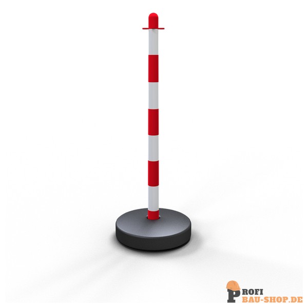 Kettenständer aus Kunststoff Pfosten Ø 40mm, Länge: 900mm weiß / rot, mit Ösen Fußplatte zum Befüllen