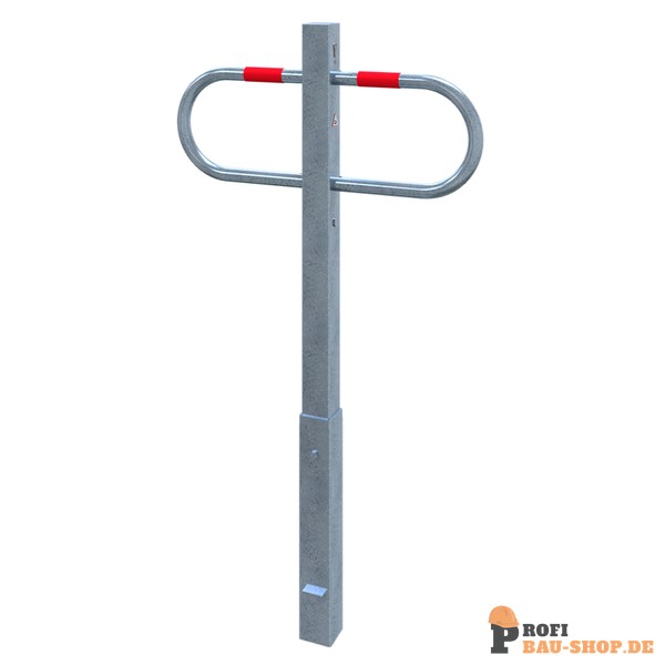 Technische Daten Durchgangs- und Parkplatzsperre herausnehmbar mit Profilzylinderschloss, feuerverzinkt, mit rot reflektierenden Leuchtstreifen