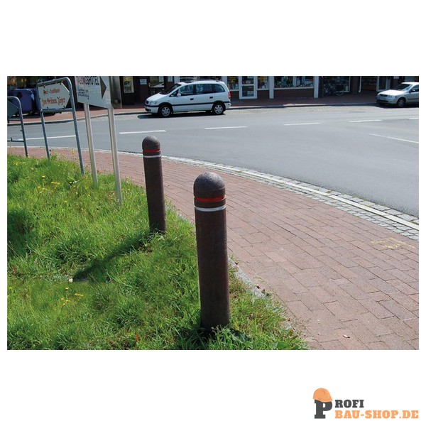 Schake Recyclingpfosten Halbkugelkopf Ø 150 mm, Poller mit 2 Fräsungen 15 mm breit und 2 Reflektorbändern oben rot, unten weiß
