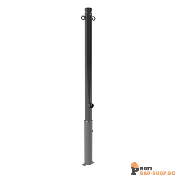 Schake Absperr-Stilpfosten Serie 464B Ø 60 mm, herausnehmbar, selbsteinrastende Verriegelung mit feuerverzinkter Bodenhülse Typ 460.40 ca. 400 mm unterflur, mit Dreikantverschluss nach DIN 3223, mit 2 Ösen