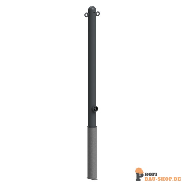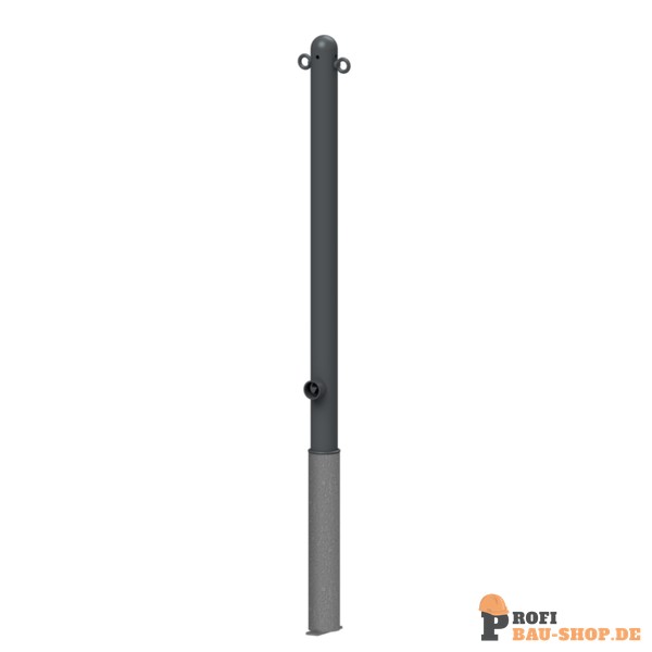 Schake Absperr-Stilpfosten Serie 468B Ø 60 mm, herausnehmbar, selbsteinrastende Verriegelung mit feuerverzinkter Bodenhülse Typ 460.40 ca. 40, mit Dreikantverschluss nach DIN 3223, mit 2 Ösen