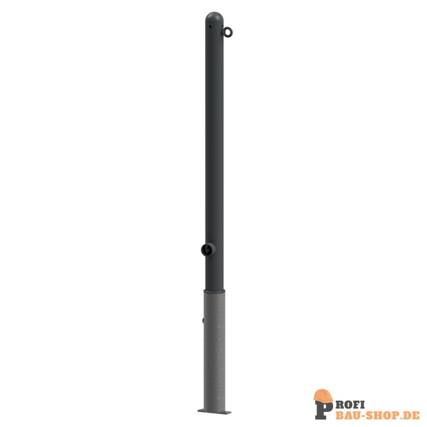 Schake Absperr-Stilpfosten Serie 468B Ø 60 mm, herausnehmbar, selbsteinrastende Verriegelung mit feuerverzinkter Bodenhülse Typ 460.40 ca. 40, mit Dreikantverschluss nach DIN 3223, mit 1 Öse