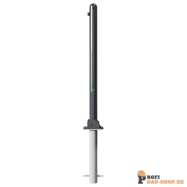 Schake Absperr-Stilpfosten Serie 468B Ø 60 mm, umlegbar, selbsteinrastende Verriegelung zum Einbetonieren, mit feuerverzinkter Bodenhülse Typ, mit Dreikantverschluss nach DIN 3223
