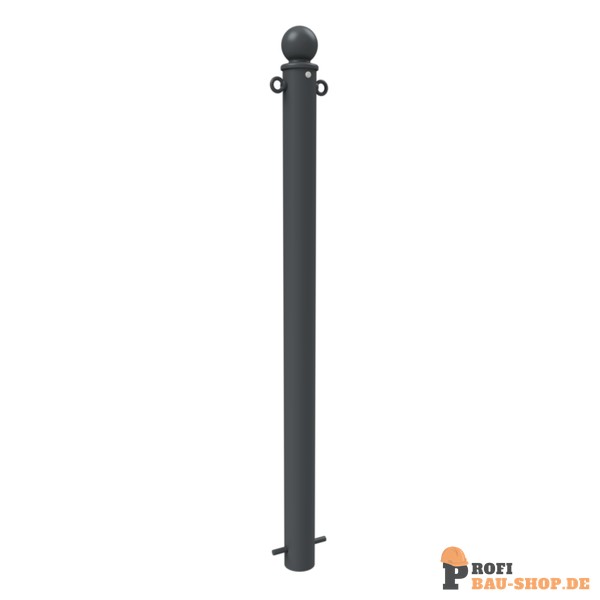 Absperr-Stilpfosten aus Stahlrohr Ø 76 mm ca. 950 mm Überflur, feuerverzinkt und anthrazitgrau (RAL 7016) beschichtet mit Kugelkopf und Zierring