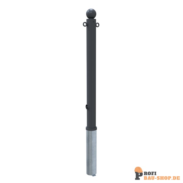Absperr-Stilpfosten aus Stahlrohr Ø 76 mm ca. 950 mm Überflur, feuerverzinkt und anthrazitgrau (RAL 7016) beschichtet mit Kugelkopf