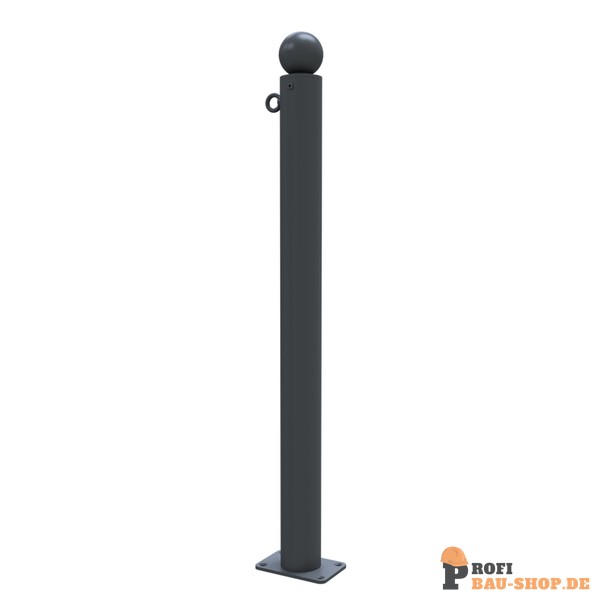 Absperr-Stilpfosten aus Stahlrohr Ø 76 mm ca. 950 mm Überflur, feuerverzinkt und anthrazitgrau (RAL 7016) beschichtet mit Kugelkopf