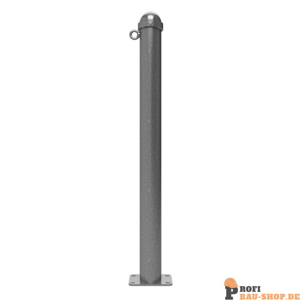 Technische Daten Absperr-Stilpfosten Serie 477B Ø 76 mm, ortsfest, für Dübelbefestigung mit Bodenplatte 100 x 150 mm, ohne Verschluss, mit 1 Öse