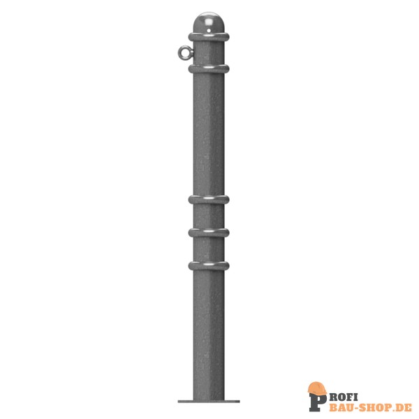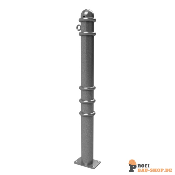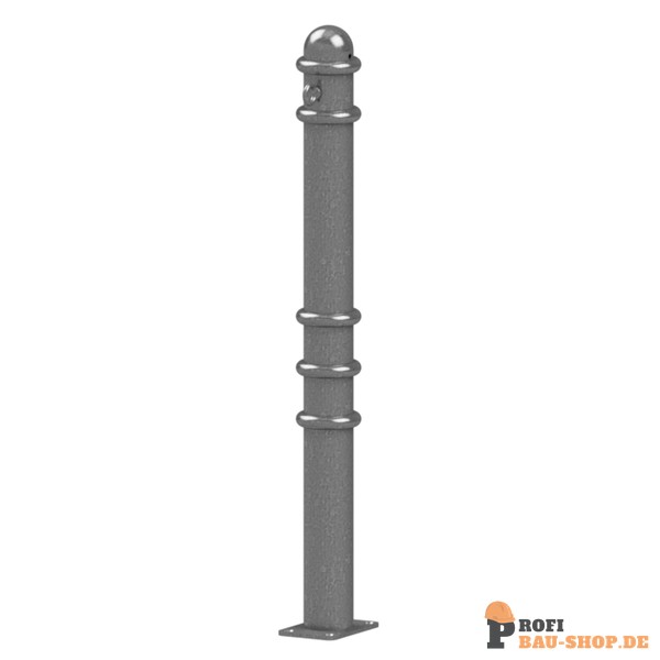 Absperr-Stilpfosten aus Stahlrundrohr Ø 76 mm ca. 950 mm Überflur, feuerverzinkt und anthrazitgrau (RAL 7016) beschichtet mit Zierringen