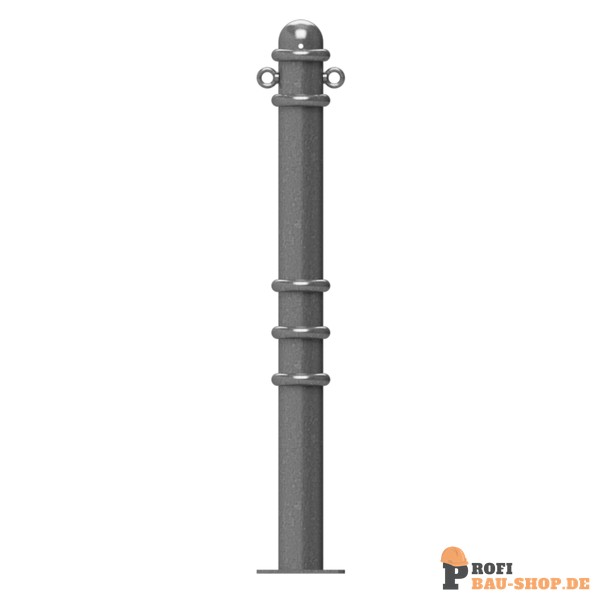 Absperr-Stilpfosten aus Stahlrundrohr Ø 76 mm ca. 950 mm Überflur, feuerverzinkt und anthrazitgrau (RAL 7016) beschichtet mit Zierringen