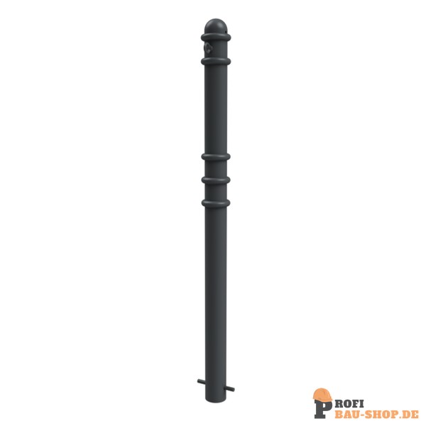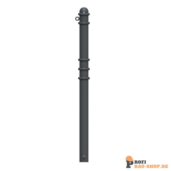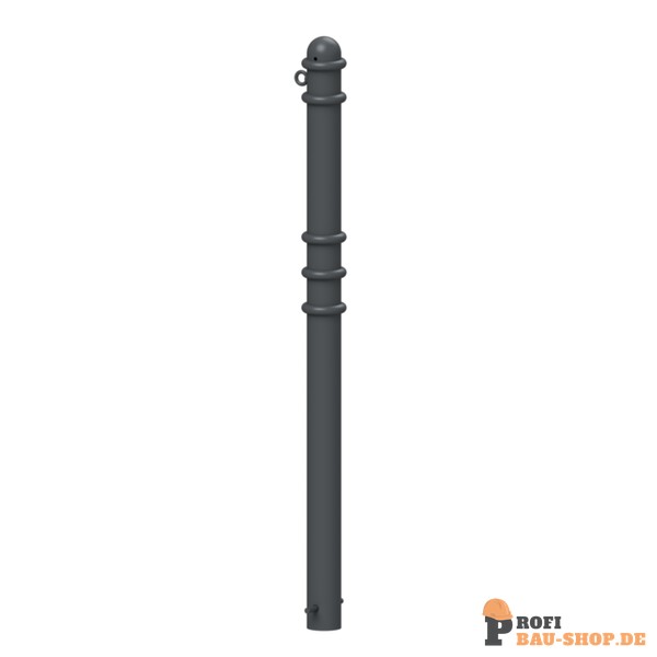 Absperr-Stilpfosten aus Stahlrundrohr Ø 76 mm ca. 950 mm Überflur, feuerverzinkt und anthrazitgrau (RAL 7016) beschichtet mit Zierringen
