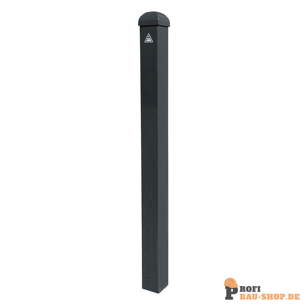 Stilpoller aus Vierkantrohr 70 x 70 mm, mit Zierkopf, ca. 950 mm Überflur, feuerverzinkt und anthrazitgrau (RAL 7016) beschichtet