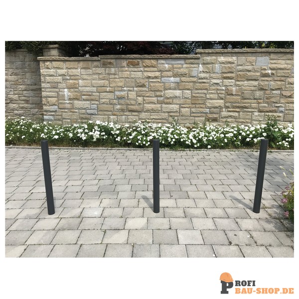 Stilpoller aus Stahlrohr Ø 89 mm ca. 950 mm Überflur, feuerverzinkt und anthrazitgrau (RAL 7016) beschichtet