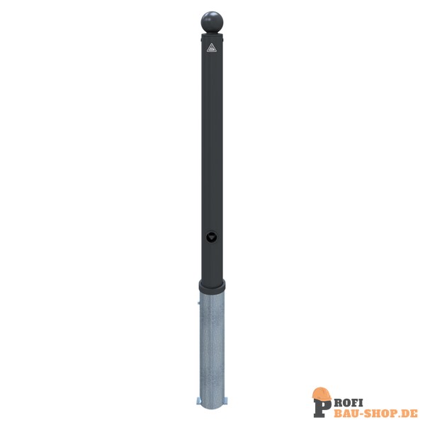 Absperr-Stilpfosten aus Stahlrohr Ø 76 mm ca. 950 mm Überflur, feuerverzinkt und anthrazitgrau (RAL 7016) beschichtet mit Kugelkopf