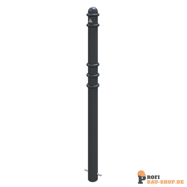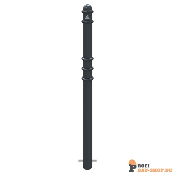 Absperr-Stilpfosten aus Stahlrundrohr Ø 76 mm ca. 950 mm Überflur, feuerverzinkt und anthrazitgrau (RAL 7016) beschichtet mit Zierringen