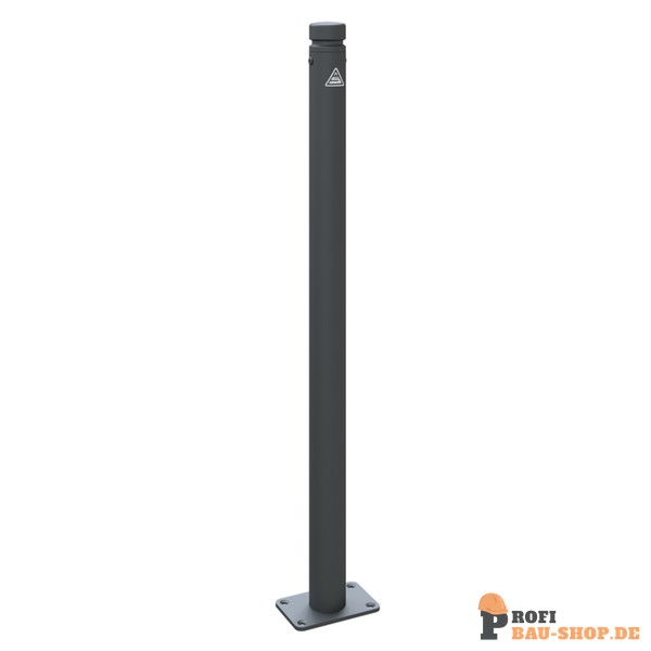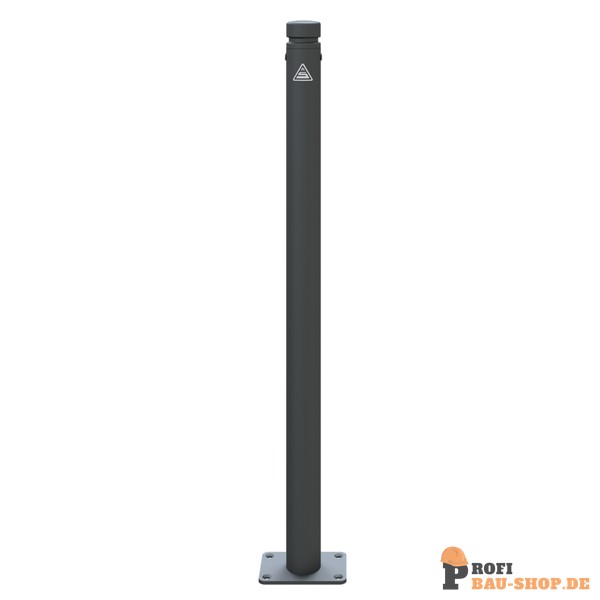 Absperr-Stilpfosten mit Ziernut aus Stahlrundrohr Ø 60 mm, ca. 950 mm Überflur, feuerverzinkt und anthrazitgrau DB 703 beschichtet.