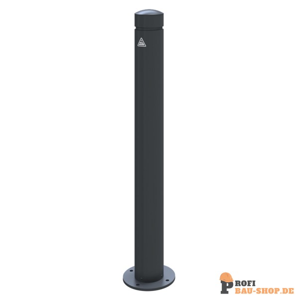 Poller aus starkwandigem Aluminium Ø 100 mm Wandstärke 8 mm, mit Ziernut, anthrazitgrau RAL 7016, Bodenteil aus feuerverzinktem Stahlrohr, ca. 900 mm Überflur