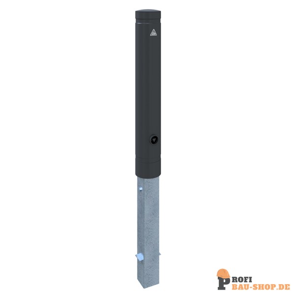 Poller aus starkwandigem Aluminium Ø 120 mm Wandstärke 8 mm, mit Ziernut, anthrazitgrau RAL 7016 beschichtet, Bodenteil aus feuerverzinktem Stahlrohr