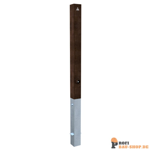 Schake Stilpoller aus Cortenstahl 80 x 80 mm, herausnehmbar, selbsteinrastende Verriegelung mit feuerverzinkter Bodenhülse Typ 470.10 ca. 5, mit Dreikantverschluss nach DIN 3223