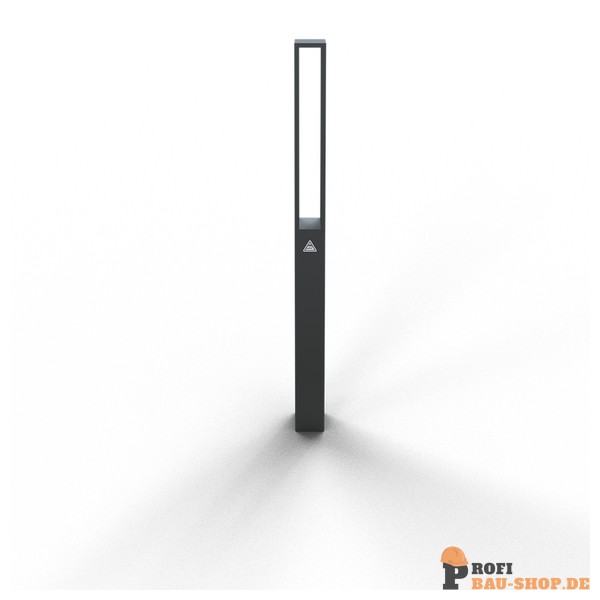 Stilpoller aus Vierkantstahlrohr 70 x 70 mm Oberteil (offen) Flachstahl, ca. 950 mm Überflur, feuerverzinkt und DB 703 beschichtet
