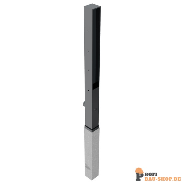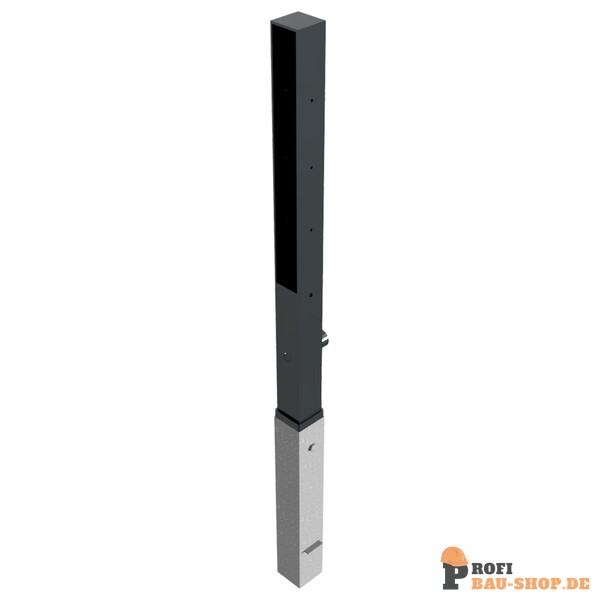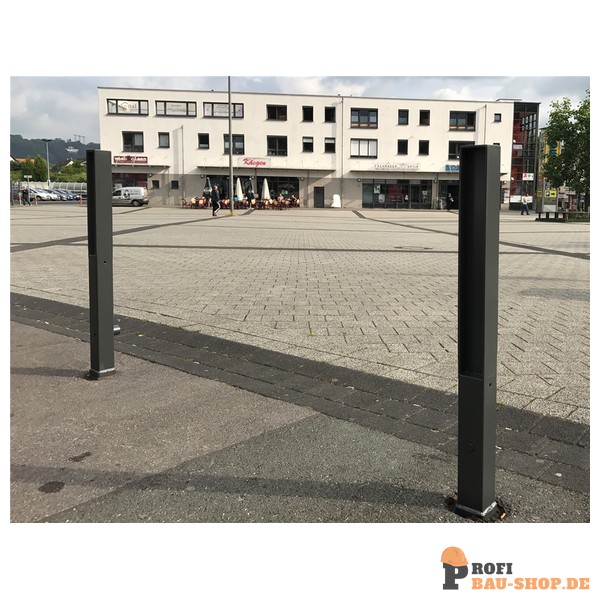 Stilpoller aus Vierkantstahlrohr 70 x 70 mm Oberteil (zu) Flachstahl, ca. 950 mm Überflur, feuerverzinkt und DB 703 beschichtet