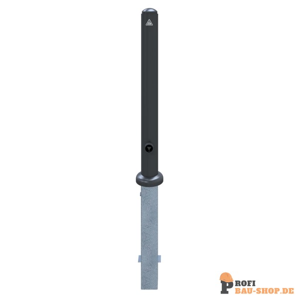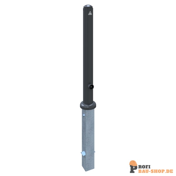 Schake Absperr-Stilpfosten Serie 480B Ø 82 mm, herausnehmbar, selbsteinrastende Verriegelung inkl. Bodenrosette, mit feuerverzinkter Bodenhülse, mit Dreikantverschluss nach DIN 3223, ohne Öse