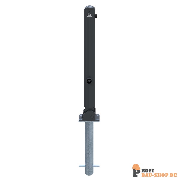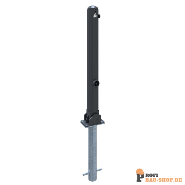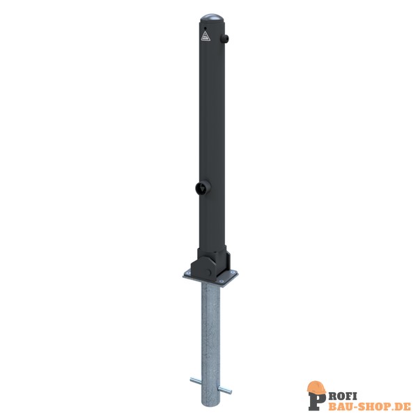 Schake Absperr-Stilpfosten Serie 480B Ø 82 mm, umlegbar, selbsteinrastende Verriegelung zum Einbetonieren, mit feuerverzinkter Bodenhülse Typ 47, mit Dreikantverschluss nach DIN 3