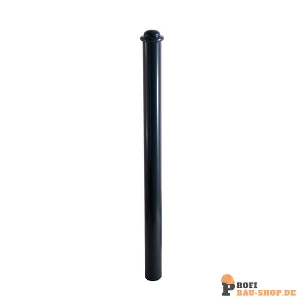 Stilpoller aus Stahlrohr Ø 82 mm ca. 800 mm Überflur, feuerverzinkt und anthrazitgrau (RAL 7016) beschichtet mit Halbkugel und Zierring