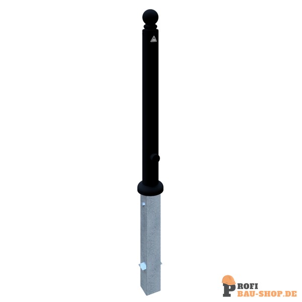 Stilpoller aus Stahlrundrohr Ø 82 mm ca. 900 mm Überflur, feuerverzinkt und beschichtet, Farbe: RAL 9005 matt (mattschwarz) mit Kugelkopf und Zierring