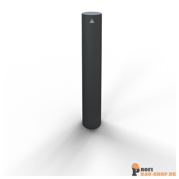 Stilpoller aus Stahlrohr Ø 152 mm mit Flachkopf ca. 950 mm Überflur, feuerverzinkt und anthrazitgrau (Eisenglimmer), pulverbeschichtet
