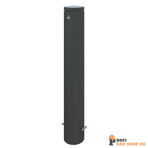 Stilpoller aus Stahlrohr Ø 193 mm mit Alukopf und Zierring ca. 950 mm Überflur, feuerverzinkt und anthrazitgrau (Eisenglimmer), pulverbeschichtet
