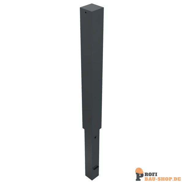 Stilpoller aus Vierkantstahlrohr 100 x 100 mm mit Flachkopf, ca. 900 mm Überflur, feuerverzinkt und DB 703 beschichtet.