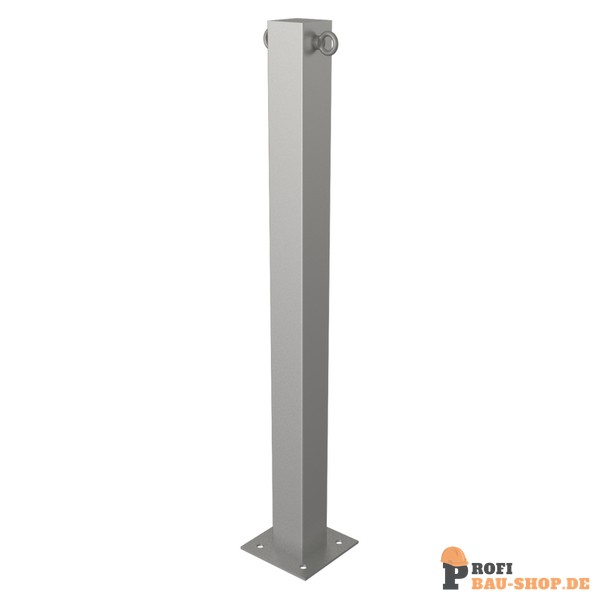 Schake Edelstahlpfosten 70 x 70 mm, ortsfest, für Dübelbefestigung mit Bodenplatte 150 x 150 mm, ohne Verschluss, mit 2 Ösen