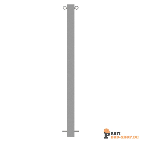 Schake Edelstahlpfosten 70 x 70 mm, ortsfest, zum Einbetonieren Gesamtlänge: 1200 mm, ohne Verschluss, mit 2 Ösen