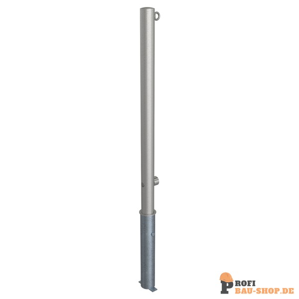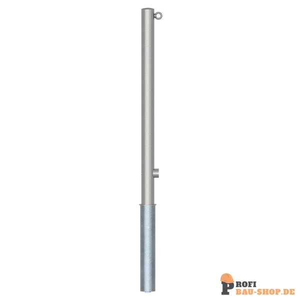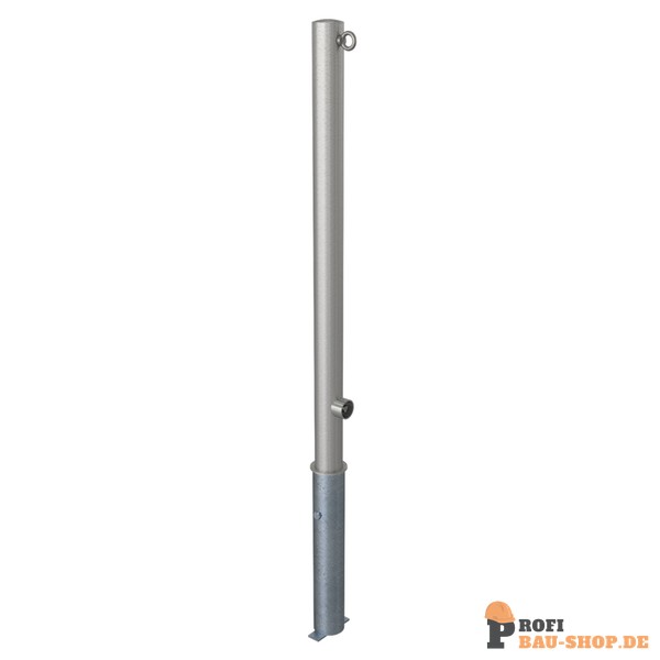 Schake Edelstahlpfosten Ø 60 mm, herausnehmbar, selbsteinrastende Verriegelung mit feuerverzinkter Bodenhülse Typ 460.40 ca. 40, mit Dreikantverschluss nach DIN 3223, mit 1 Öse