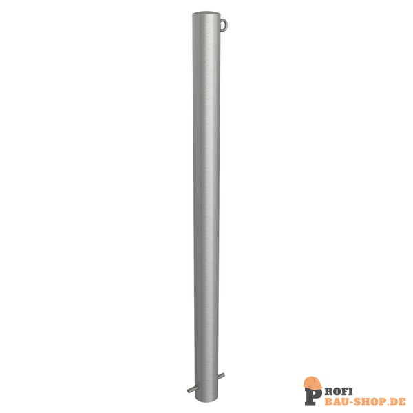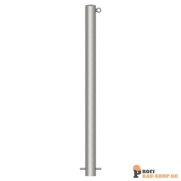 Schake Edelstahlpfosten Ø 76 mm ohne Ziernut, ortsfest, zum Einbetonieren Gesamtlänge: 1200 mm, ohne Verschluss, mit 1 Öse