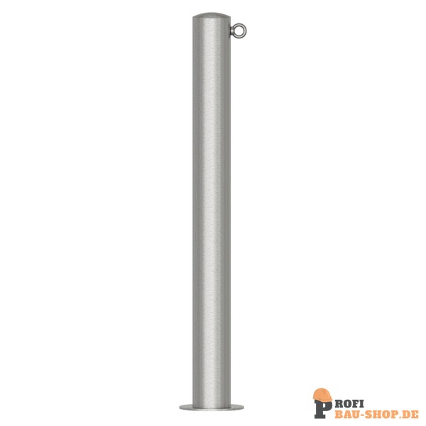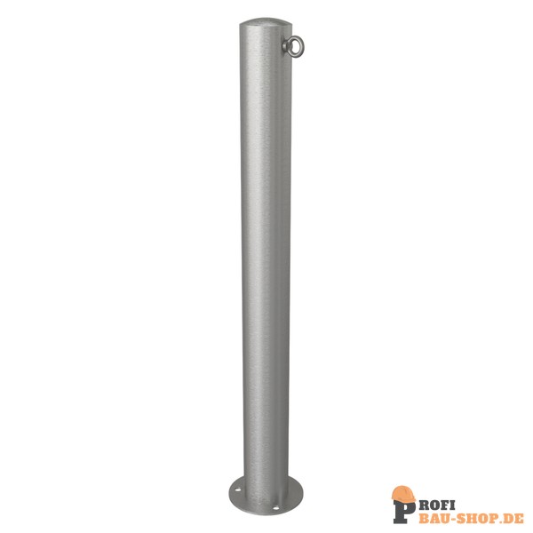 Schake Edelstahlpfosten Ø 89 mm, ortsfest, für Dübelbefestigung mit Bodenplatte Ø 150 x 6 mm, ohne Verschluss, mit 1 Öse