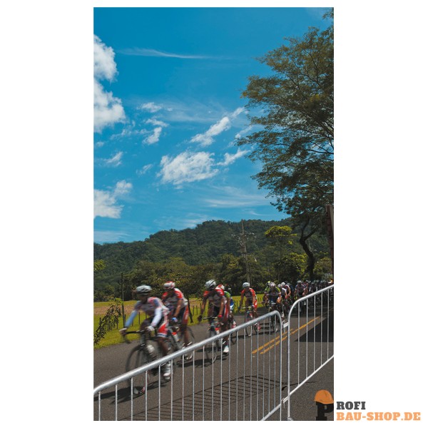 Gitterelement Typ "Basic"verzinkt aus Rundrohr 33,7mm mit Haken und Ösen Gesamthöhe 1,08m zur Aufstellung mit Flach oder Schrägfuß , mit waagerechtem Röhrchen als Tragegriff Auch in beschichteter Ausführung und / oder mit Reflektionsstreifen auf Anfrage erhältlich.
