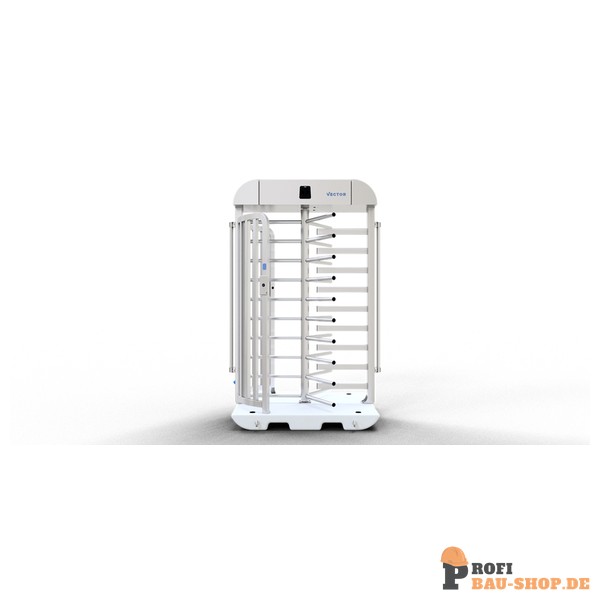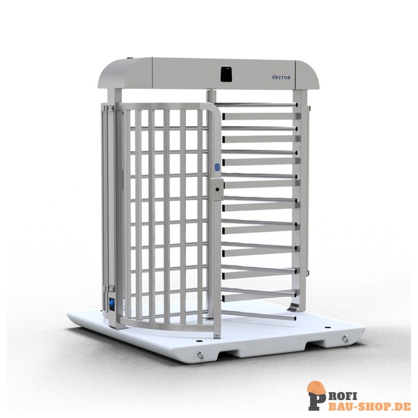 Schake Drehkreuz V-Turnstile, Maße: 1200 x 1500 x 2410 mm, Durchgangsbreite 600 mm, auf Betonplatte, elektro mechanisch