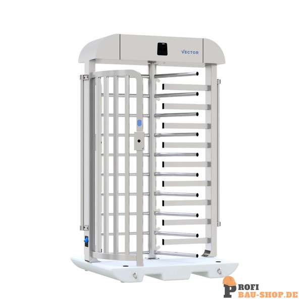 Schake Drehkreuz V-Turnstile, Maße: 1200 x 1500 x 2410 mm, Durchgangsbreite 600 mm, auf Betonplatte, rein mechanisch