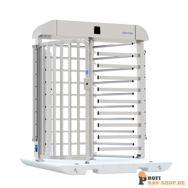 Schake Drehkreuz V-Turnstile, Maße: 2000 x 2000 x 2410 mm, Durchgangsbreite 850 mm, auf Betonplatte, elektro mechanisch