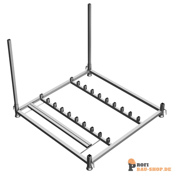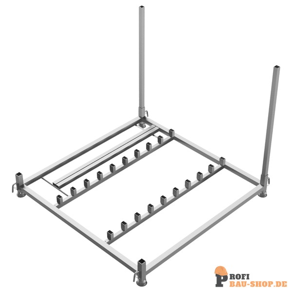 Stapelpalette für Polizeigitter Typ U Lichte Maße: 1900 x 1900 mm Länge der Holme: 1640 mm speziell für Lagerung und Transport von 10 Polizeigittern (Art.- Nr. 419.012) Grundkonstruktion aus 60 x 60 mm bzw. 60 x 40 mm Vierkantrohr verschweißt, herausnehmbare Holme Ausführung: verzinkt